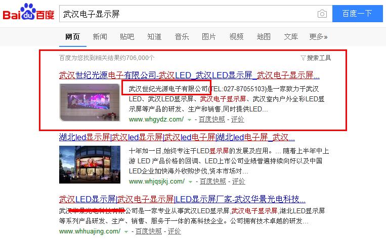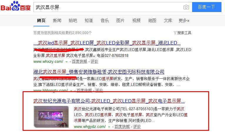 武漢世紀光源電子有限公司所有關鍵詞上線效果如圖: