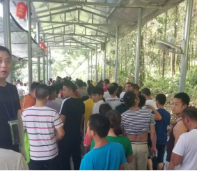 就這樣小編帶著忐忑的小心臟坐上了公司去銀河谷漂流的車。早上的武漢并不像往常一般炎熱,雖然天氣預報的是有雨,但實際是陰天。從武漢出發,到咸寧通山縣已是艷陽高照,接近十二點。我們到銀河谷附近的農莊簡單的吃了一些農家小菜,便趕到銀河谷漂流取票,開始排隊。