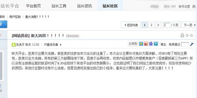 最近逛博客看到一條消息: “醫美行業面臨洗牌!百度不再收錄”,因為小編比較關注這一塊的動態,于是點進去看了一遍,雖然我一直希望百度在醫美行業這一塊能更加的嚴格,避免造成不好的后果。但是就目前來看,這些消息給出的依據根本沒有說服力。